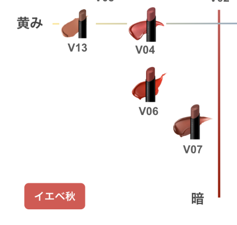 ルージュスターヴァイブラント全色マトリクスから見た「イエベ秋向けゾーン」