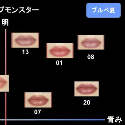 リップモンスター全色マトリクスから見た「ブルベ夏向けゾーン」